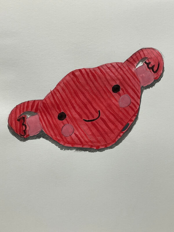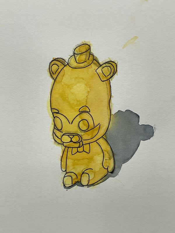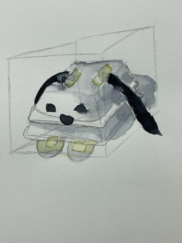 The second piece is a watercolour with the attempt of implementing the work of Paintingsbyrujuta. I tried to implement their work by the lack of outline as well as trying to have it seem a bit more realistic. The paint unfortunately blends too much together and the shadows haven't worked either as it makes the piece feel flat and you cannot tell where the object itself begins nor ends. If I were to do this piece again, I would work more on differentiating the shadows more so you could tell where the object starts and I would be more patient and wait for the first colour to dry before starting a new one so there isn't any accidental blending.