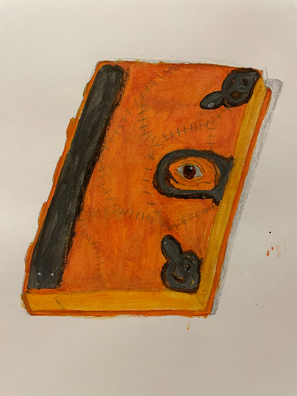 This fifth piece is an acrylic with the attempt of implementing the work of Jenny Saville. Jenny Saville is known for her work being very focused on skin so I attempted to focus on the same thing and painted my notebook that is of the film "Hocus Pocus" in which the spell book is meant to be said that it is made of skin. Unfortunately, what I have learned and aim to now improve is that I find it difficult to create skin tones and struggle to build upon the layers of colour due to a lack of understanding that I shall strive to fix.