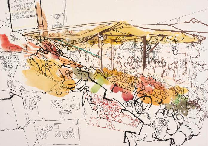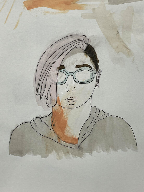 The first piece is a watercolour with the attempt of implementing the work of Gabriel Picolo. I tried to implement his work by adding the outline as well as trying to keep to a paler colour palette. I would say the outline is quite alright however in some areas the watercolour blends into others so next time I need to be more patient and wait for one colour to dry enough to where I can paint in a different colour and it not mix. I also think I should work more on shading as some areas are difficult to tell if they are meant to be darker than others.