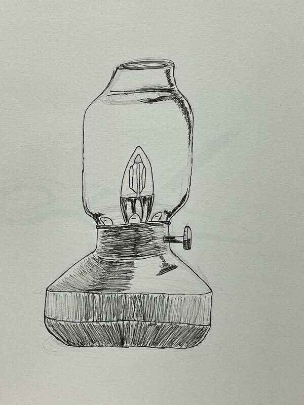 Above are experiments for becoming comfortable with ink. I mostly used pigment liner except for the last piece where I used a brush and ink. All except the last two were completed with the actual object being in front of me whereas the last two were completed from scratch. Overall with these experiments, I would say that they helped me with my shading as well as helping me with a refresher for perspective. Out of all the experiments, the ones I prefer the most is the tree and the lamp because the tree has a certain amount of detail along the trunk that makes it rather appealing and I like the shading on the lamp because it's the added detail of the curvature of the lamp's head and the shadow of the dimmer.